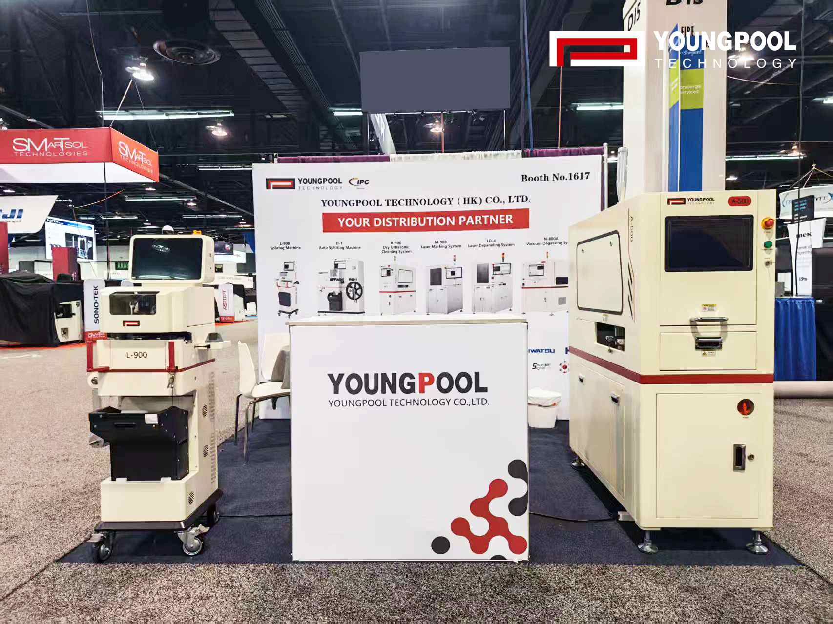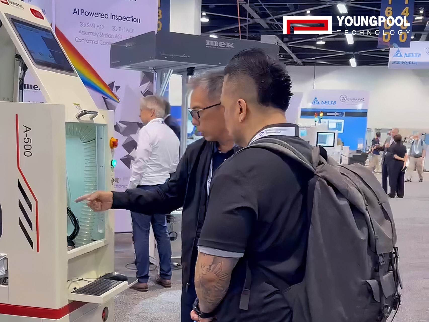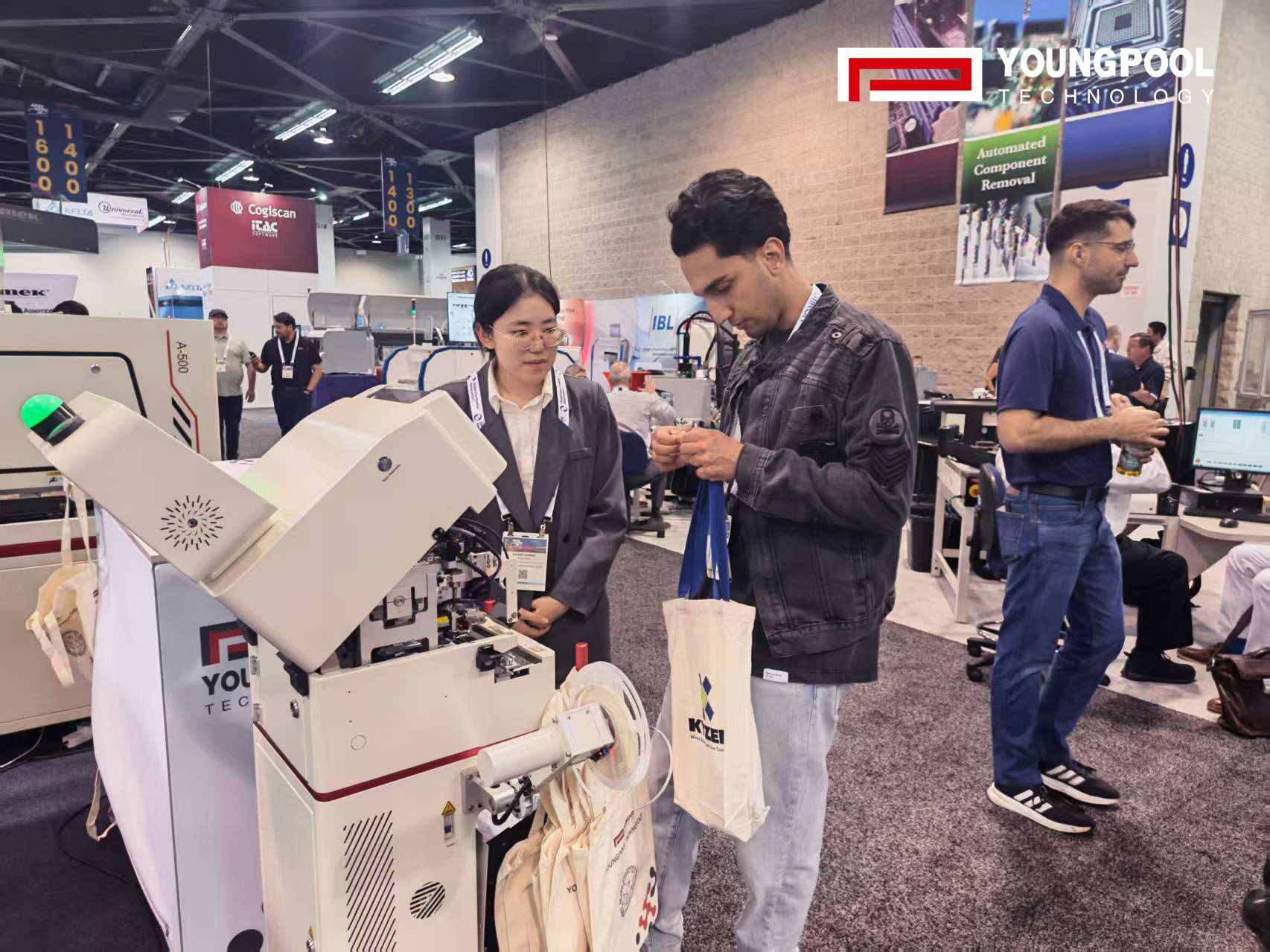 ในงานนิทรรศการ Youngpool ได้นำเสนอเครื่องจักรหลักสองเครื่อง ได้แก่ เครื่องต่อชิ้นส่วนอัจฉริยะ (Intelligent Splicing Machine) และเครื่องทำความสะอาดด้วยคลื่นอัลตราโซนิคแบบแห้ง (Dry Ultrasonic Cleaning Machine) พร้อมด้วยโซลูชันอัจฉริยะ SMT อีกมากมาย โดยสาธิตความสามารถอย่างเป็นระบบ ตั้งแต่การจัดการวัสดุไปจนถึงการควบคุมคุณภาพ
