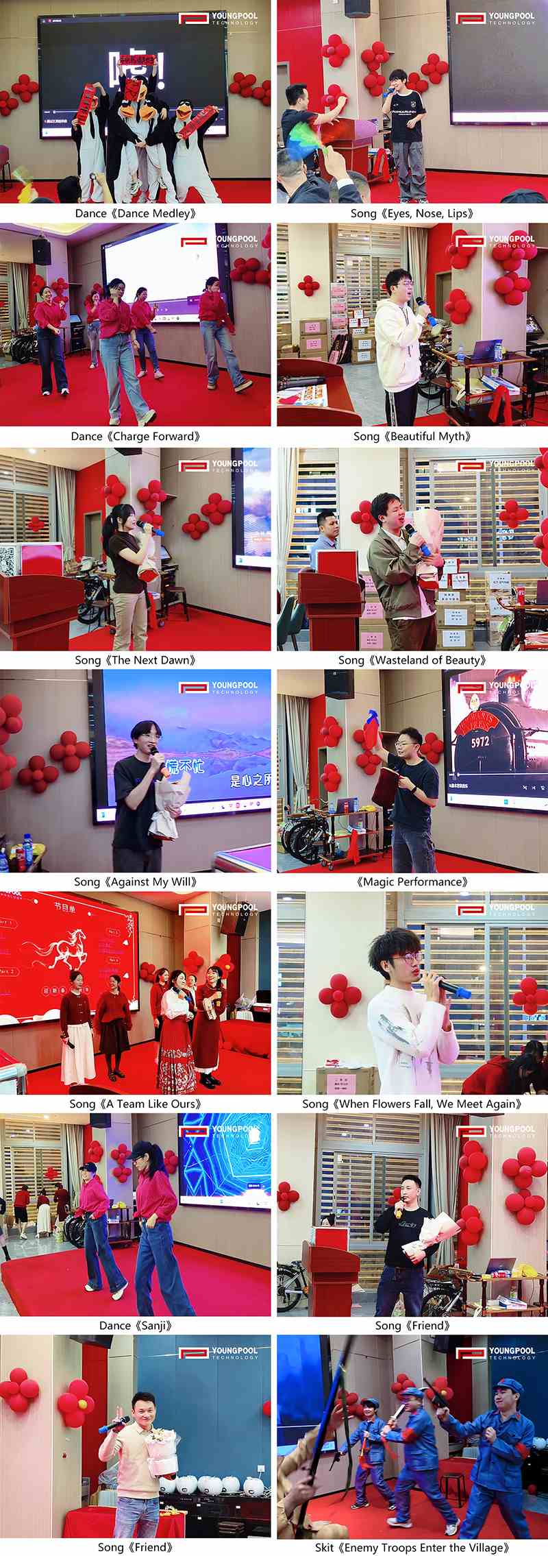 As the applause for recognition gradually subsided, the stage transformed into a celebration of joy. With music filling the hall, performances unfolded one after another. Youngpool team members took to the stage—some delivering heartfelt songs, others performing energetic dances, and still others presenting comedic sketches—bringing a vibrant and engaging audio-visual experience to the audience.